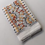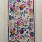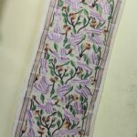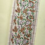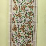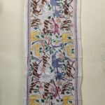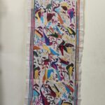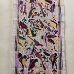 D Tussar Silk Kantha Stole with Multicolor Bird & Floral Motif – Off-White