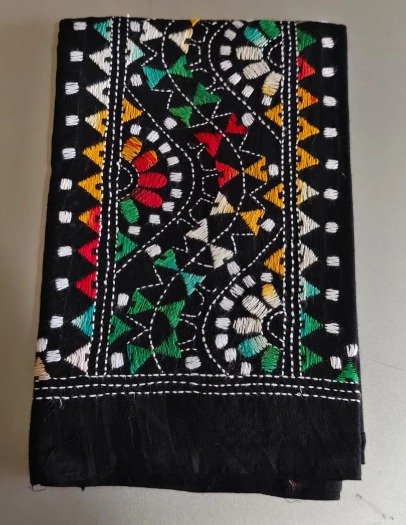 Silk Kantha Stitch Blouse Material (Hand-Embroidered – Black Base)