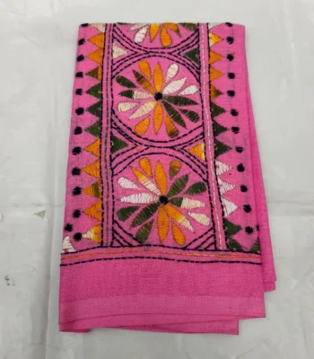 D Tussar Silk Kantha Stitch Stole with Multicolor Floral Motif