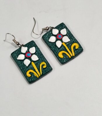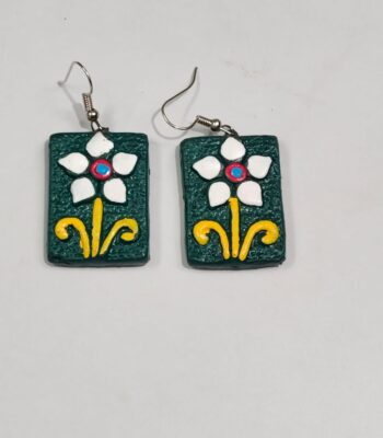 Terracotta Earring Blue Color Red Flower