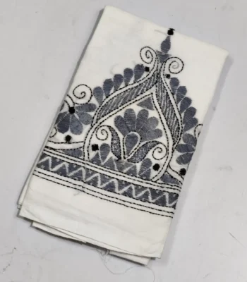 Black Cotton Kantha Stitch Blouse Piece & Material