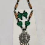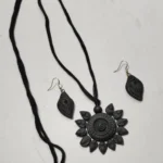 Black Terracotta Necklace Set with Earrings Leaf design