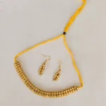 Golden Beads Choker Necklace Set with Matching Earrings – Yellow Thread Design