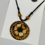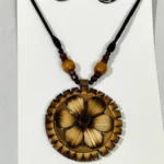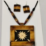Bamboo Geometric Jewellery Set – Tribal Pendant Necklace with Earrings