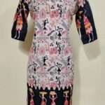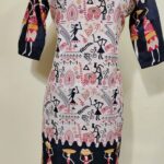 Cotton Warli Art Printed Kurti with Contrast Sleeve Design