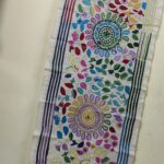 D Tussar Silk Kantha Stitch Stole with Multicolor Mandala & Leaf Motif