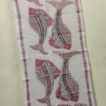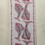 Handcrafted Tussar Silk Kantha Stole with Traditional Fish Motif – Off-White & Pink