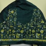 Silk Kantha-Embroidered Blouse Material – Deep Green (Folk Motif)