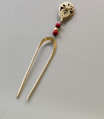 Brass Spiral Hair Bun Cage with Stick Pin – Gold Tone