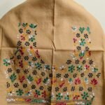 D Tussar Silk Kantha Stole – Off-White with Orange & Green Floral Vines