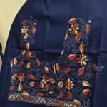 D Tussar Silk Kantha Stole – Off-White with Blue Floral Vines