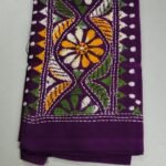 D Tussar Silk Kantha Stole – Off-White, Blue & Purple Vines
