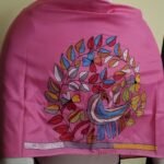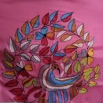 Silk Kantha Blouse Piece – Peacock & Leaf Motif Design pink