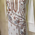 Men’s Cotton Kantha Stitch Kurta/Panjabi – Ivory Fish & Vines