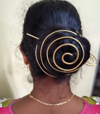 Brass Spiral Hair Bun Cage with Stick Pin – Gold Tone