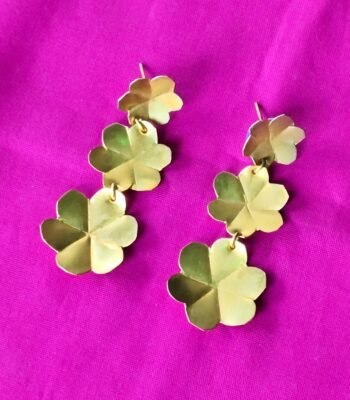 Triple-Flower Brass Dangle Earrings