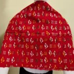 D Tussar Silk Kantha Stole – Off-White, Red & Yellow