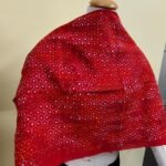 D Tussar Silk Kantha Stole – Off-White, Red & Yellow