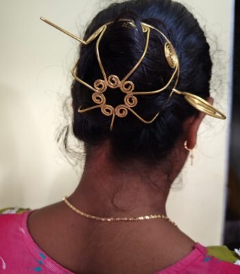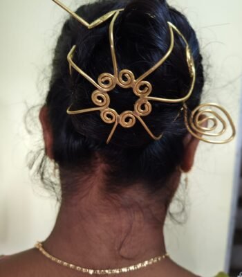 Brass Spiral Hair Bun Cage with Stick Pin – Gold Tone
