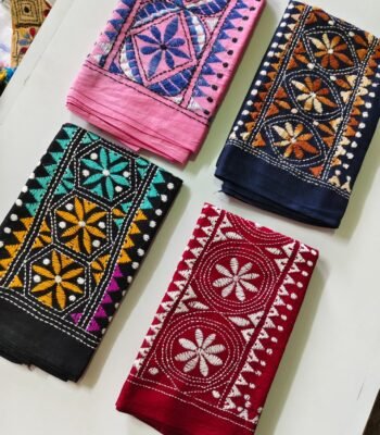 Bengal Kantha Stitch Khadi Cotton Saree – Blue