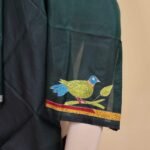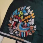 Silk Kantha Stitch Blouse Piece – Peacock & Leaf Design