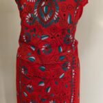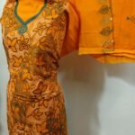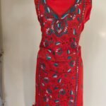 Cotton Kantha Stitch Long Kurti Material – Orange Floral Vine