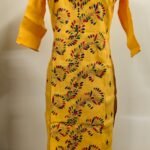 Cotton Kantha Stitch Kurti – Mustard Peacock Vines