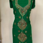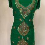 Cotton Kantha Stitch Long Kurti Material – Emerald Paisley (Green)
