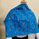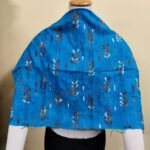 D Tussar Silk Kantha Stole – Off-White with Blue Floral Vines