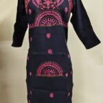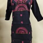 Cotton Kantha Stitch Kurti – Black Pink Arch Motifs