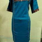 CG Blue flex Cotton Kurti Ajrakh degien Wooden Button