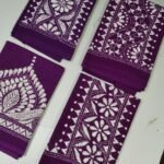 D Tussar Silk Kantha Stole – Off-White with Purple Vines