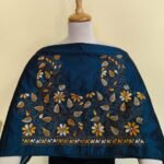 D Tussar Silk Kantha Stole – Off-White with Teal Vines