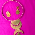 Geometric Brass Statement Choker Set (Crescent Tier & Diamond Drop)