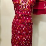 Cotton Kantha Stitch Dress Material – Red Salwar Suit 3-Pc Set