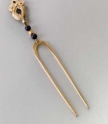 Brass Spiral Hair Bun Cage with Stick Pin – Gold Tone