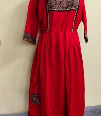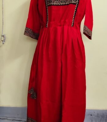 Cotton Kantha Stitch Long Kurti Material (Multicolor on Black)