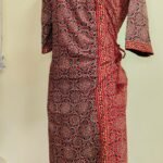 This is a Handcrafted Women Red cotton Ajrakh kurti design Long Kurti, Suitable for Women and girls. (Quantity: 1 piece)