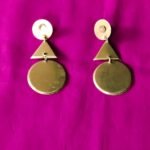 Geometric Brass Disc Earrings – Circle & Triangle Dangles