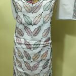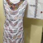 Cotton Kantha Stitch Dress Material – White Pastel Leaf Buti 3-Piece Set