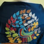 Silk Kantha Blouse Piece – Peacock & Leaf Design