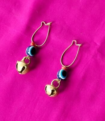 Ghungroo Brass Hoop Earrings – Black and white mix Stone
