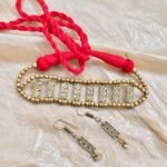 Handcrafted Brass Bead Choker Necklace Set with Red Thread and Matching Earrings