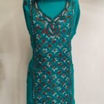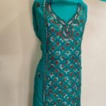 Kantha Stitch Salwar Suit Material – Turquoise Green with Multicolor Floral Embroidery