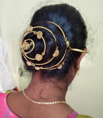 Brass Spiral Hair Bun Cage with Stick Pin – Gold Tone
