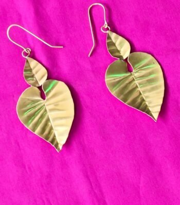 Handcrafted Brass Leaf Dangle Earrings – Double Leaf