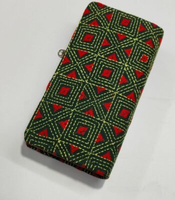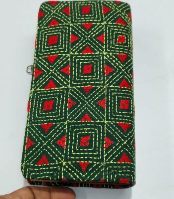 Kantha Cotton Zip Wallet – Double Zipper Compartments Green