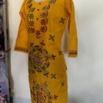 Kantha Stitch Long Kurti (yellow colour)