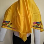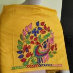Silk Kantha Blouse Piece – Peacock & Leaf Motif Design Yellow