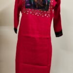 Cotton Kantha Stitch Kurti – Red Contrast Panel Yoke